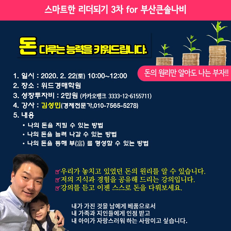 경제 전문가 김성민 선배님 의 ‘돈 다루는 능력을 키워드립니다’는 큰솔 아카데미 두 번째 강연입니다.