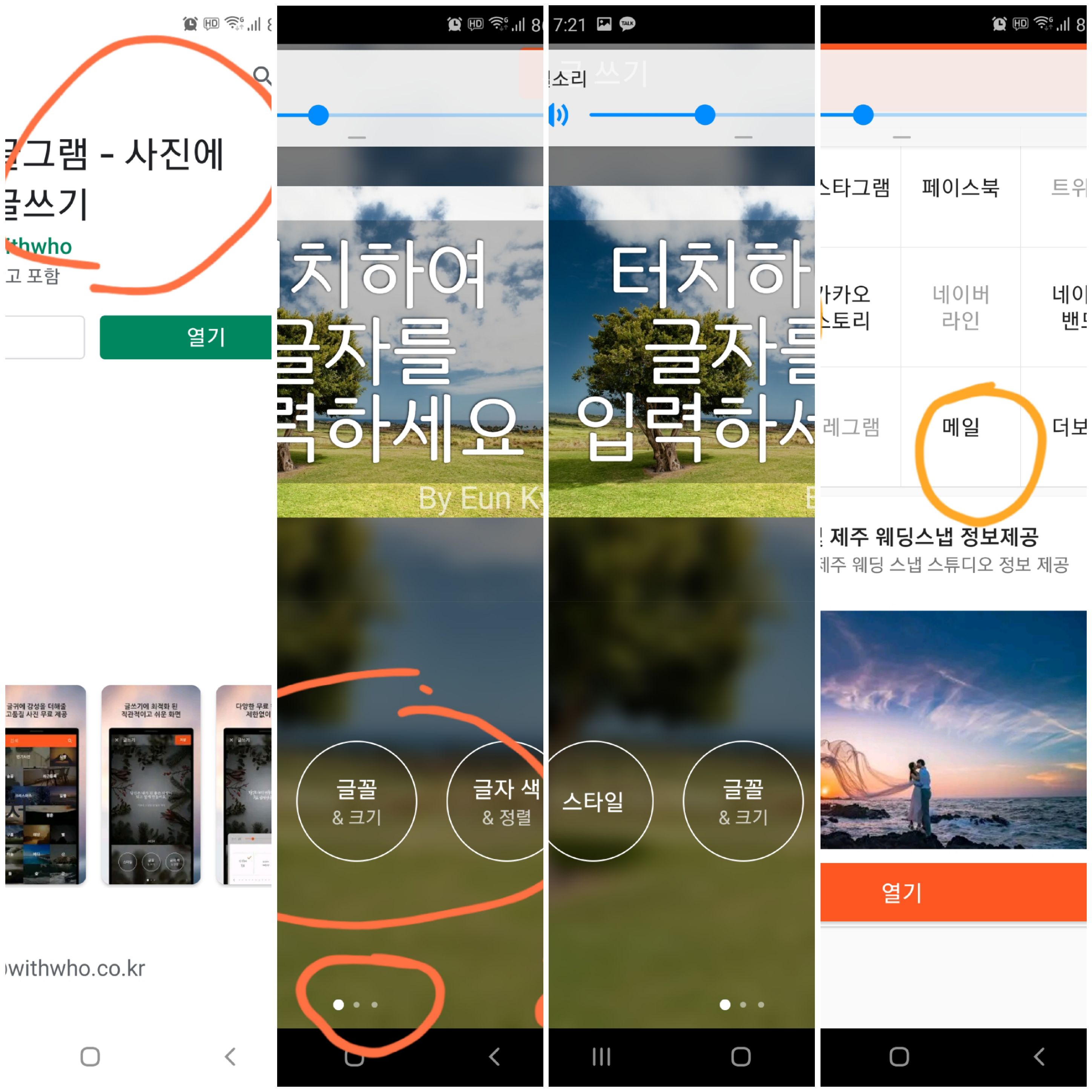 사진이나 그림에 글을 쉽게 입히는 기능의 앱은 바로 '글그램'입니다. 혹시라도 저와 같이 기능이 궁금한 분은 쉽게 사용할 수 있으니 도움이 되었으면 좋겠습니다.