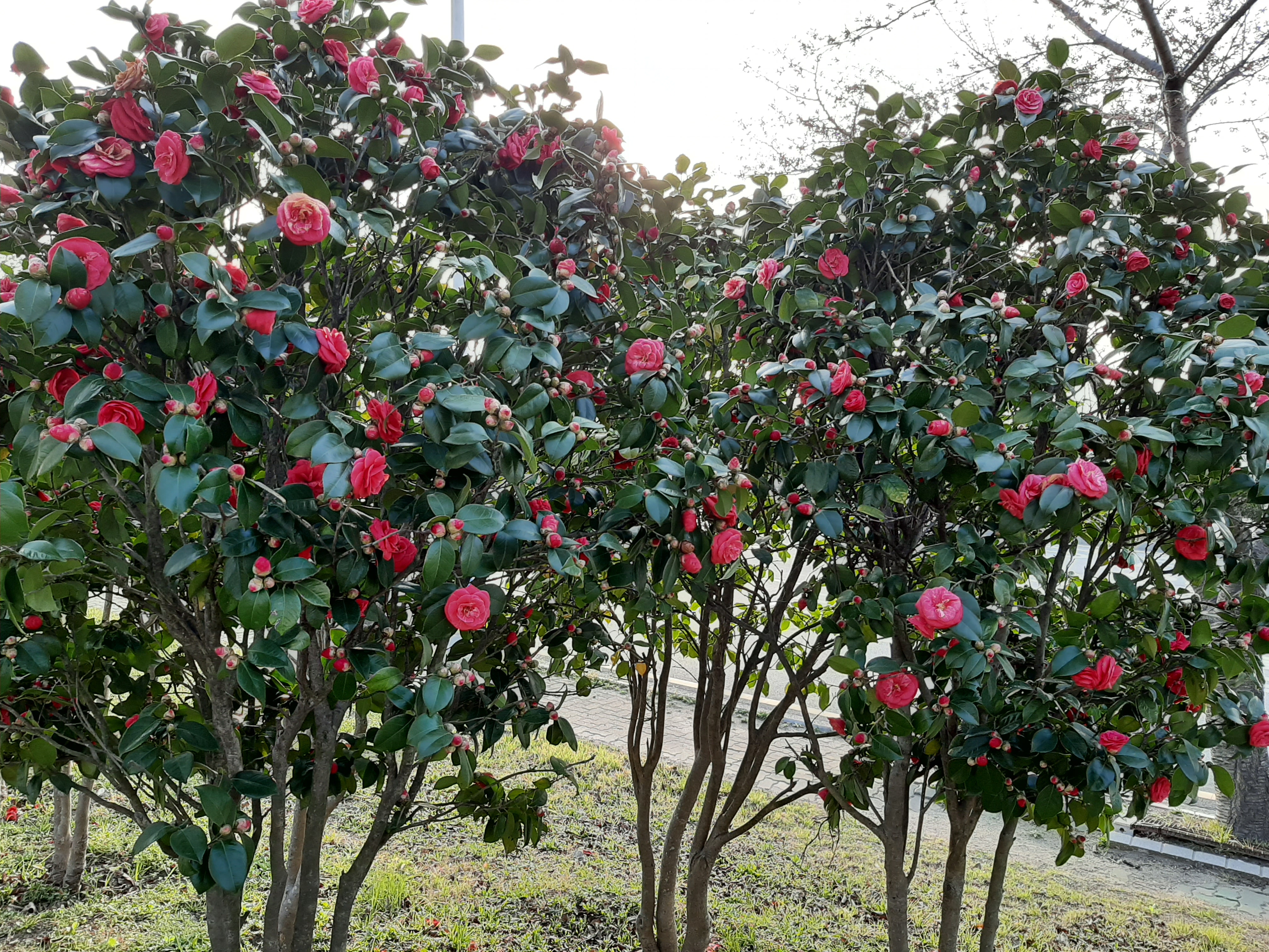 동백꽃도 선홍색 꽃빛이 아름답습니다.