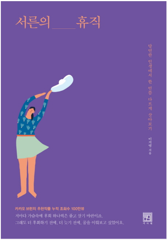 < 서른의 휴직> (이지영/서사원) 직장생활 8년 차 인 작가는 대학시절부터 오로지 공무원 시험을 준비하여 졸업과 동시에 공무원 생활을 시작하며 어느덧 서른의 나이를 맞이합니다. 앞만 보며 쉼 없이 달려왔던 저자는 직장생활의 단조로움으로 어느 날 숨이 막힐 것 같은 자신을 맞닥뜨립니다. 남들은 안정적인 직장생활을 할 수 있는 저자를 부러워했지만 정작 자신은 조직의 부품 화 되어가는 자신의 일상에 회의가 밀려온 것입니다.