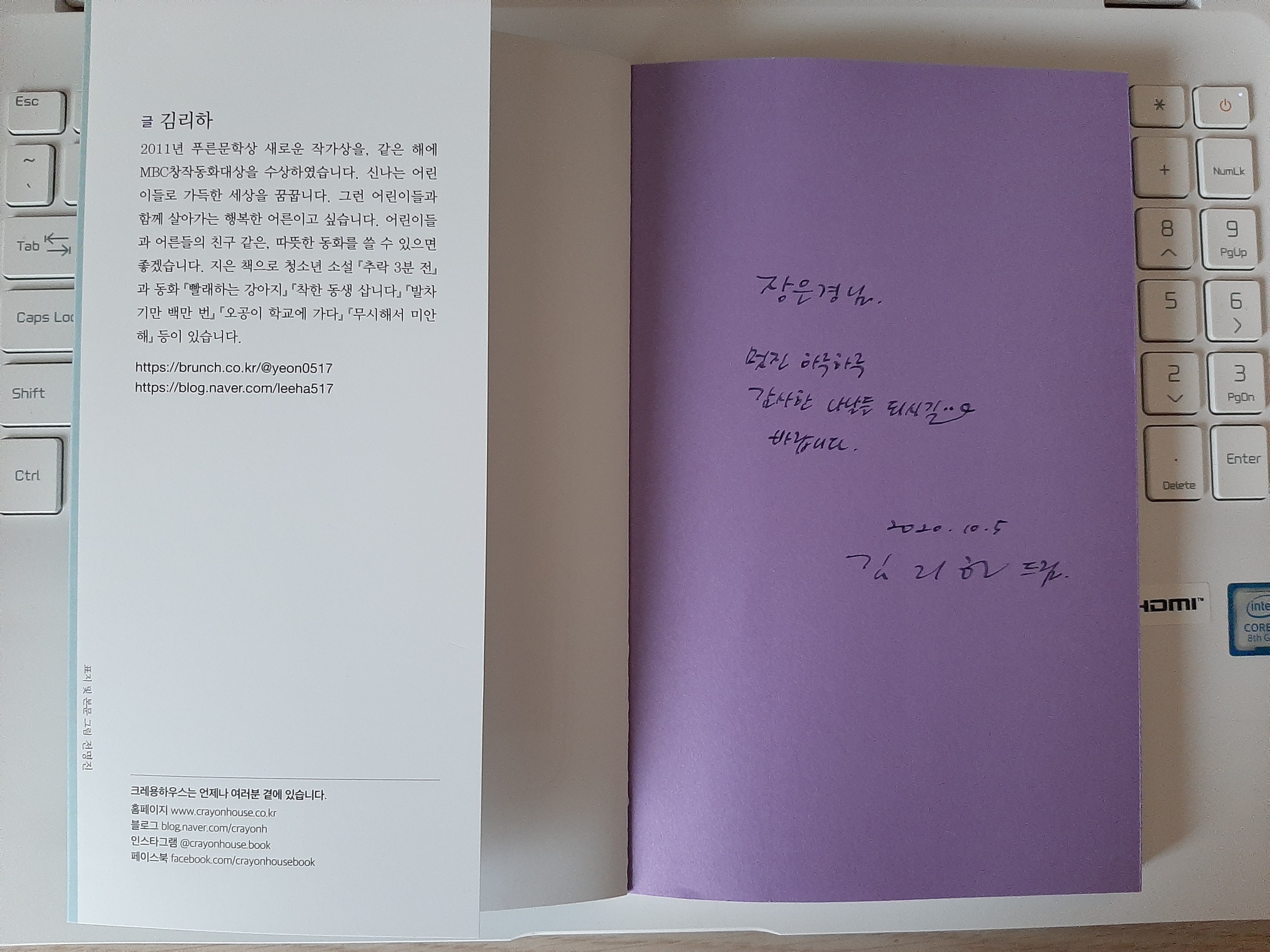 드디어 기다리고 기다리던 동화작가 김 리하님의 새로운 책이 나왔습니다. 작가님의 친필 싸인본의 책을 받으니 그 설렘과 기쁨이 더욱 큽니다.