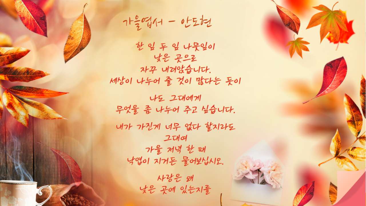 매 토론회때마다 소중한 시를 하나씩 올려주심도 정말 감사합니다. 덕분에 마음 촉촉해지는 시를 함께 할 수 있습니다. 이 시를 읽으니 회장님 부부가 많이 떠오릅니다.