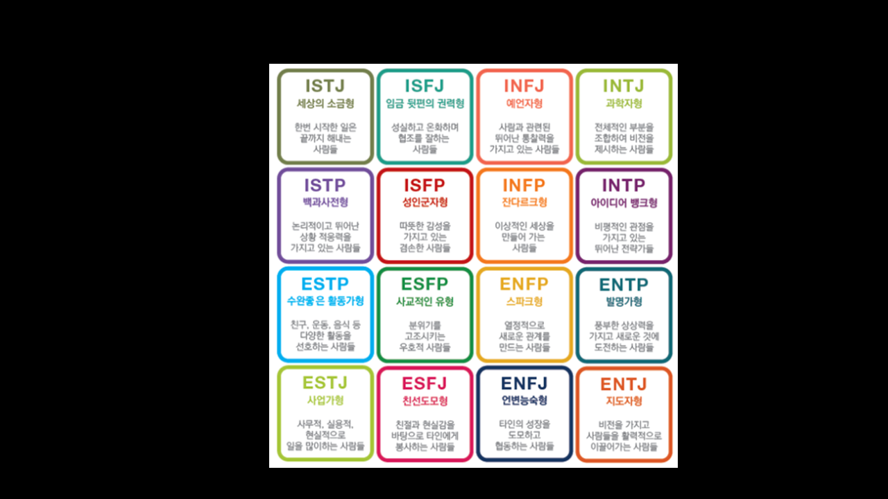 지난 줌 강의 독서 모임에서는 MBTI(성격유형검사)를 실시하시어 스스로의 성격유형을 알아보고 슬기롭게 삶을 꾸려갈 것을 도우셨습니다. 저는 의외로 ISFP인 성인군자형으로 나왔습니다. (제가 생각할 땐 성인군자랑은 조금...)