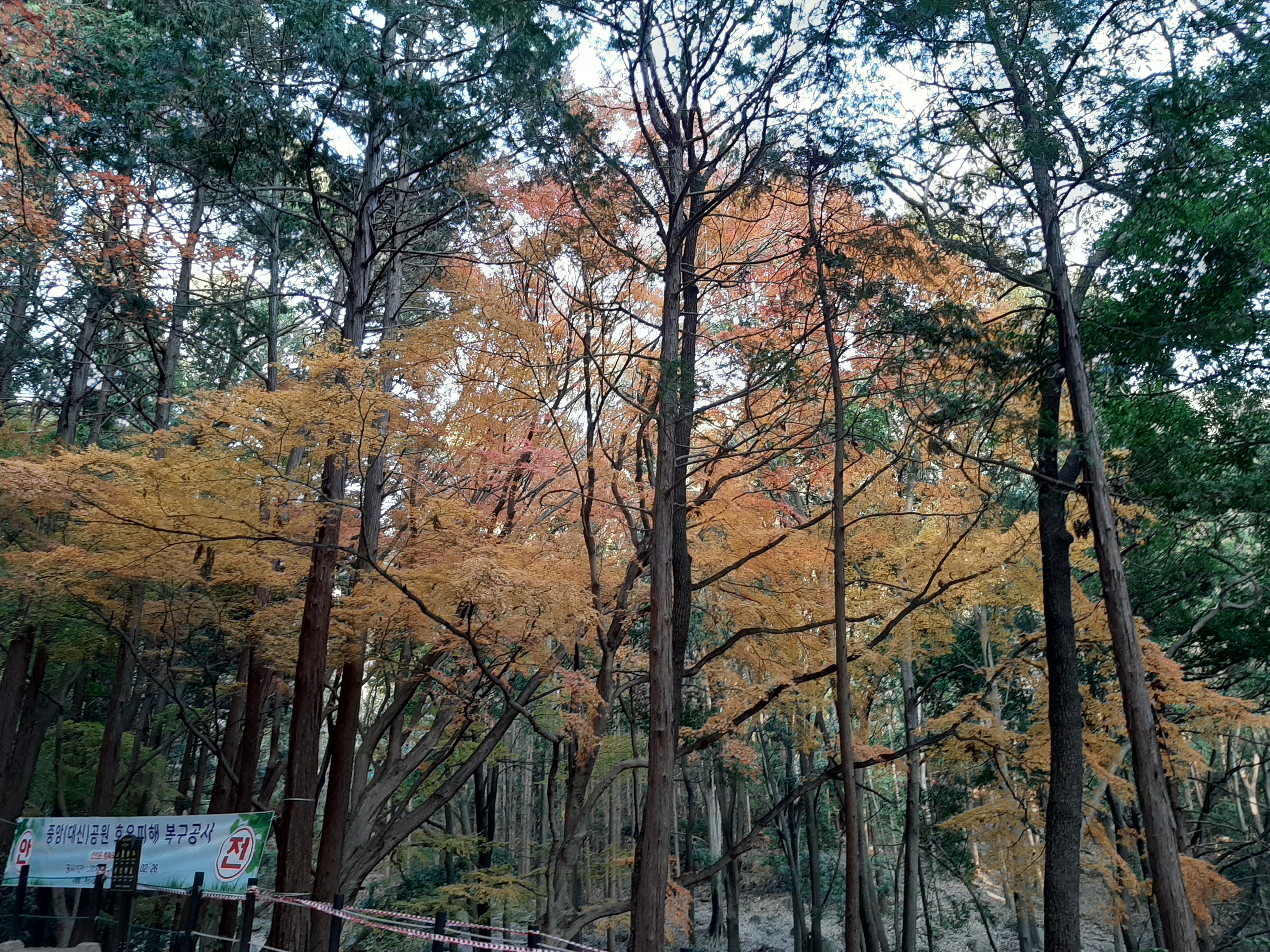 답답한 마음을 떨쳐버리려고 오랜만에 대신공원을 다녀왔습니다. 인간세상은 코로나로 혼비백산인데 대신공원 숲의 나무들은 평화스럽고 아름답게 그지 없습니다. 오랜만의 숲나들이로 때 늦게 단풍잎의 노랗고 빨간 아름다운 색깔들로 많은 위로를 받습니다.