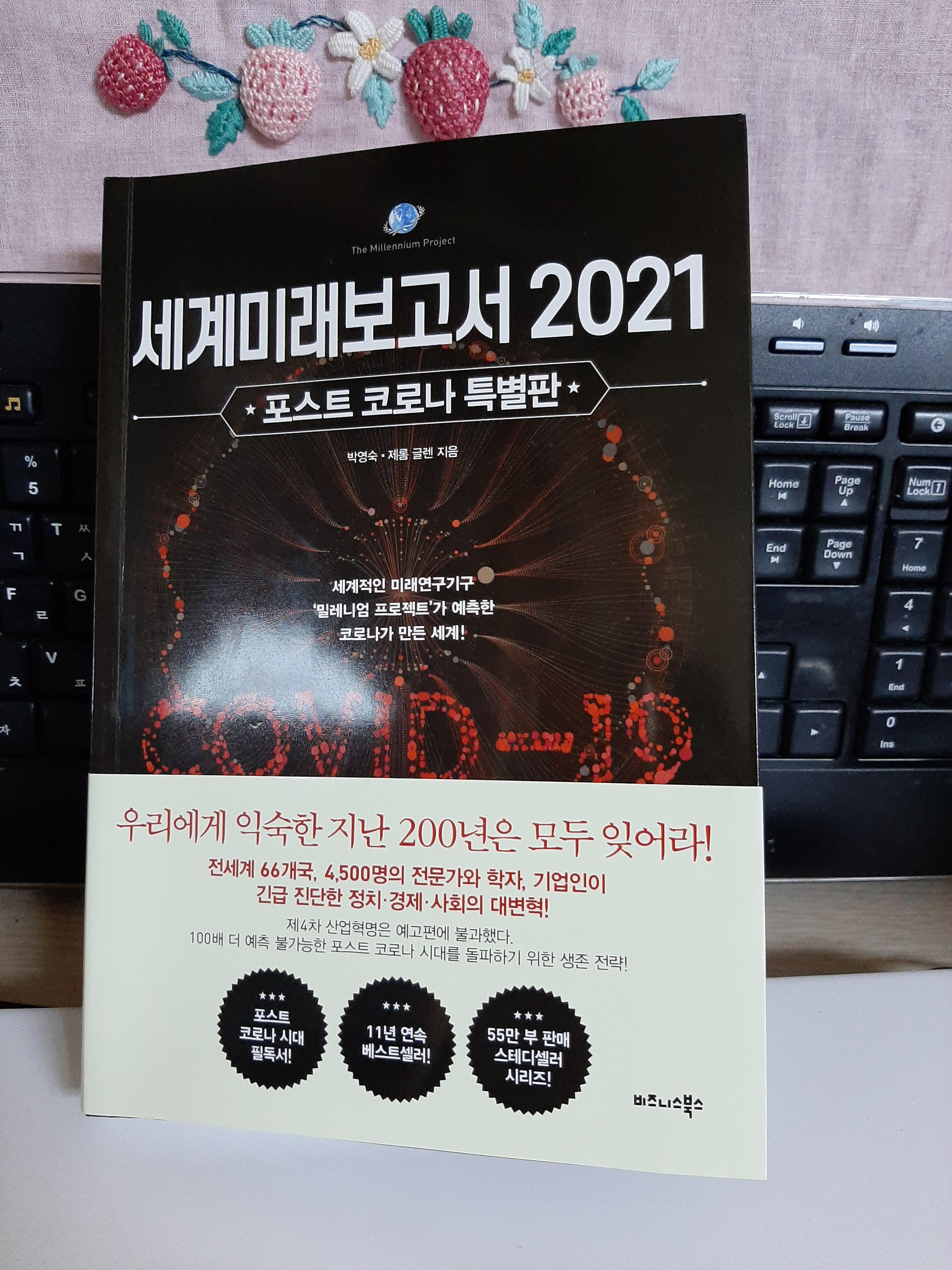 지난 독서모임에서 건강식과 108 배 운동 전도사인 간호사 선배님이 신년 맞이 첫 토론 책 <세계 미래보고서 2021>를 7권 기부하셨습니다. 운 좋게 제가 당첨되어 선물로 도착한 새 책을 즐겁게 읽었습니다. 제가 뽑기나 당첨은 잘 되지 않는데 큰솔 나비 독서모임을 시작하고는 자주 당첨이 되는 행운을 누립니다.