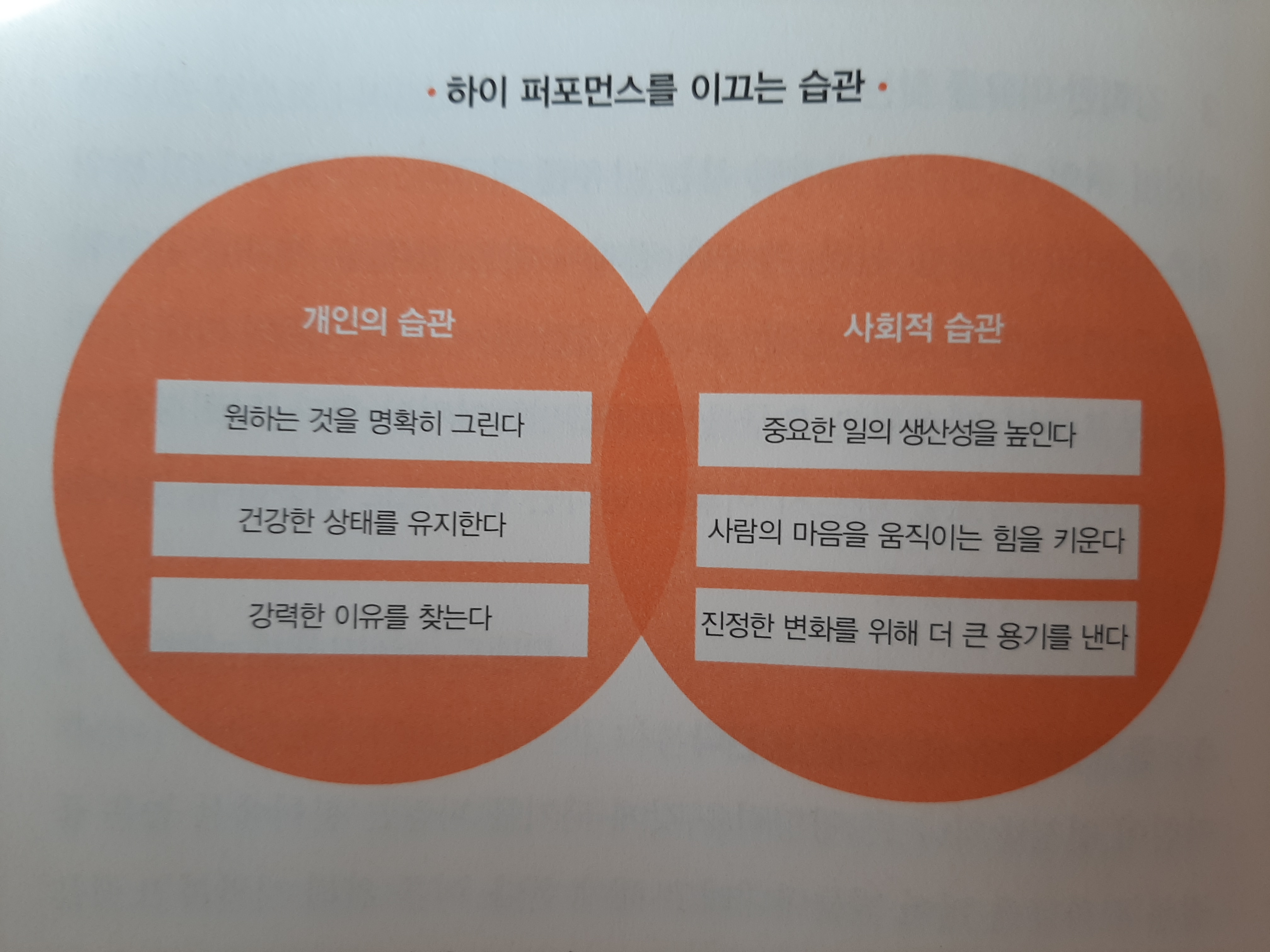 뛰어난 성과를 위한 여섯 가지 습관에는 타고난 재능과 성장 배경과는 전혀 상관이 없습니다. 단지 지속적인 습관을 만들기 위해서 내 마음을 항상 긍정적 심리상태로 유지해야 하는 것이 중요합니다.