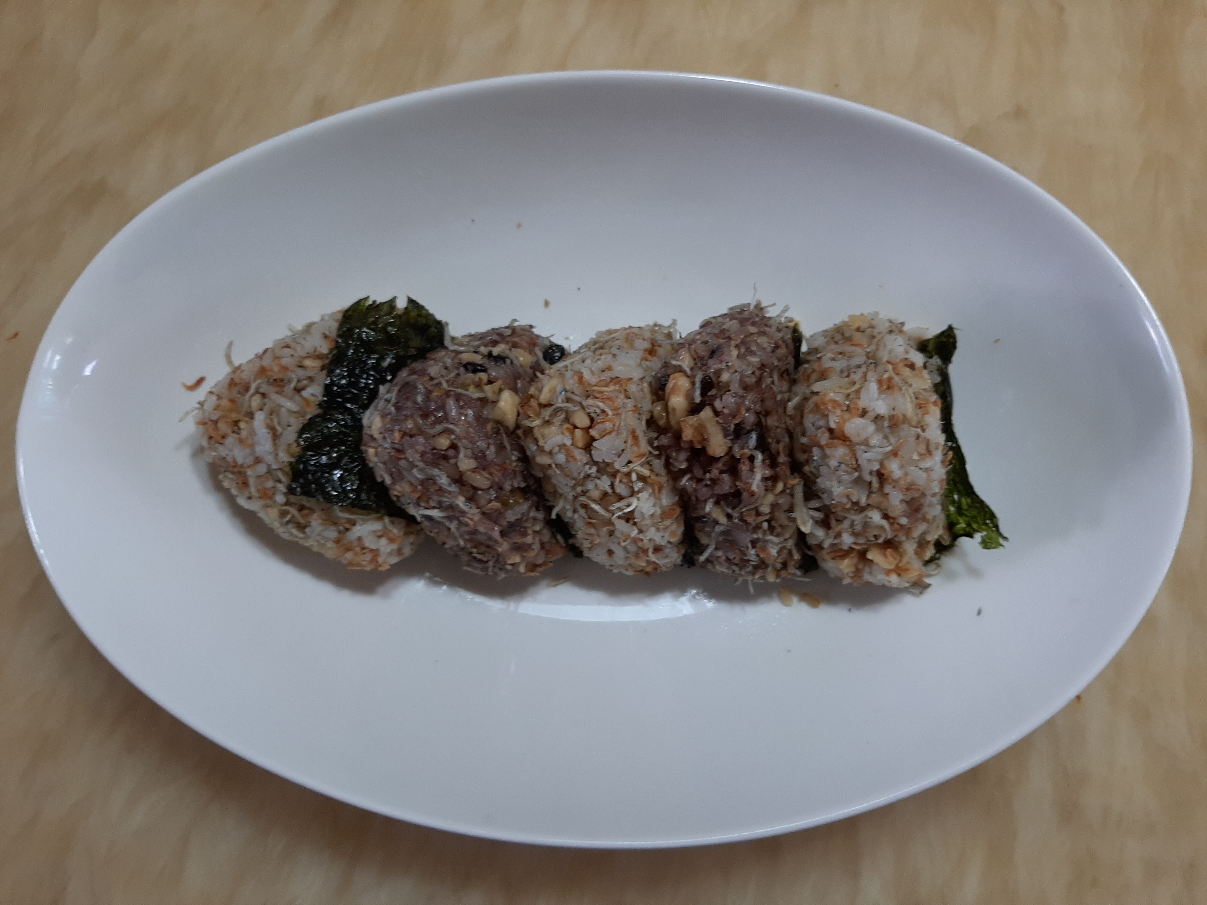 아주 잔 새우와 멸치가 혼합되어 있는 일명 '밥새우'를 섞어서 만든 주먹밥입니다. 요리 법도 쉽고 간단히 만들 수 있어서 무엇보다 좋습니다. 딸이 만들어 준 주먹밥을 먹고 완전 취향저격을 느꼈습니다.