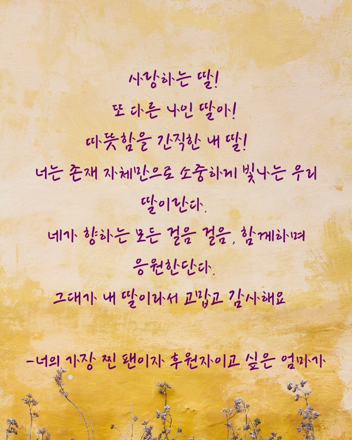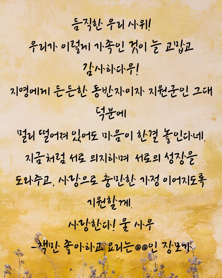 평소에 가장 감사하고 사랑하면서도 표현이 쉽지 않았는데 이 번에 가족들 모두에게 감사 메시지를 보낼 수 있어서 무엇보다도 기쁘다.