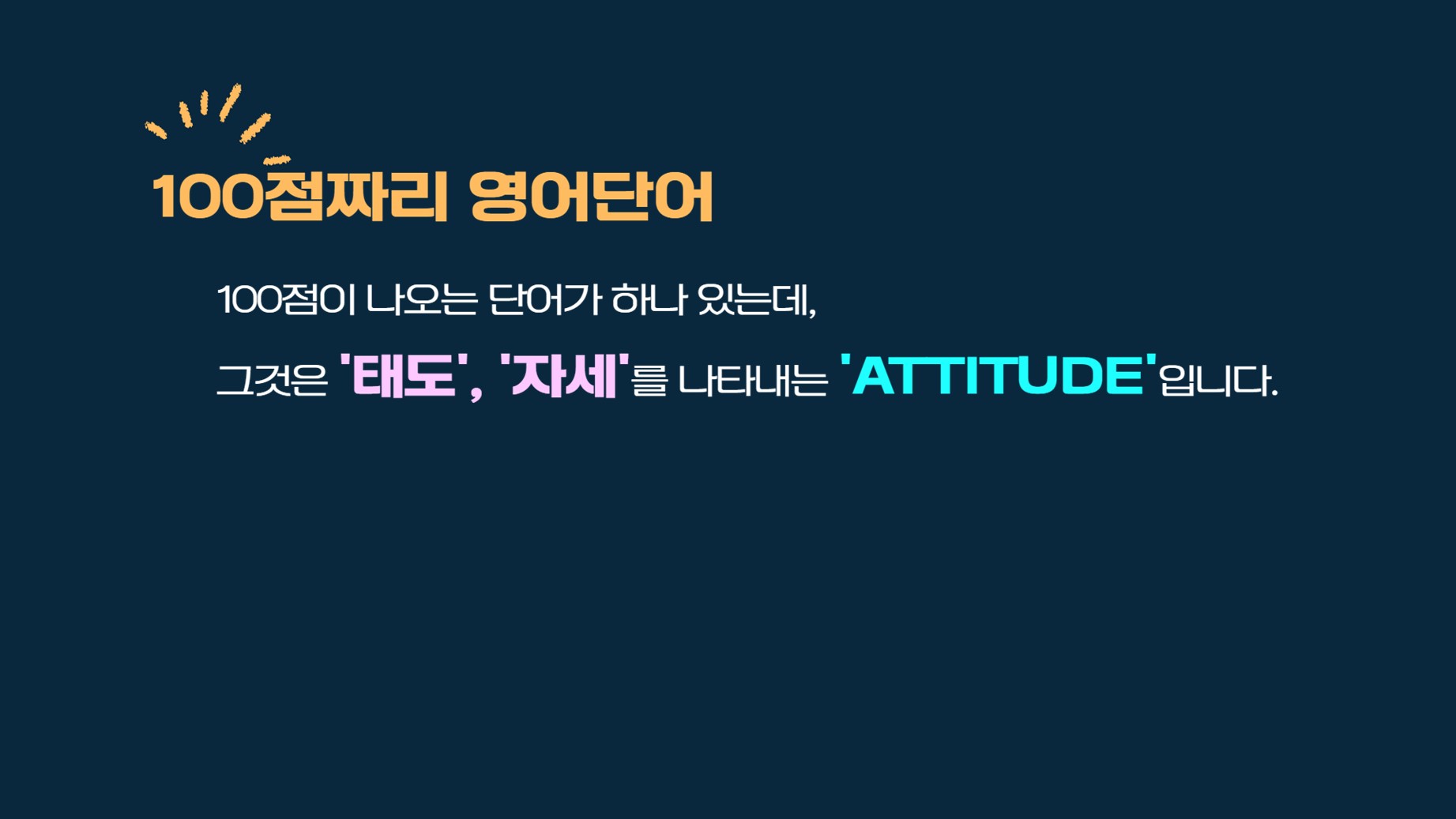 100 점 짜리 영어단어는 Attitude(태도, 자세) 이다.