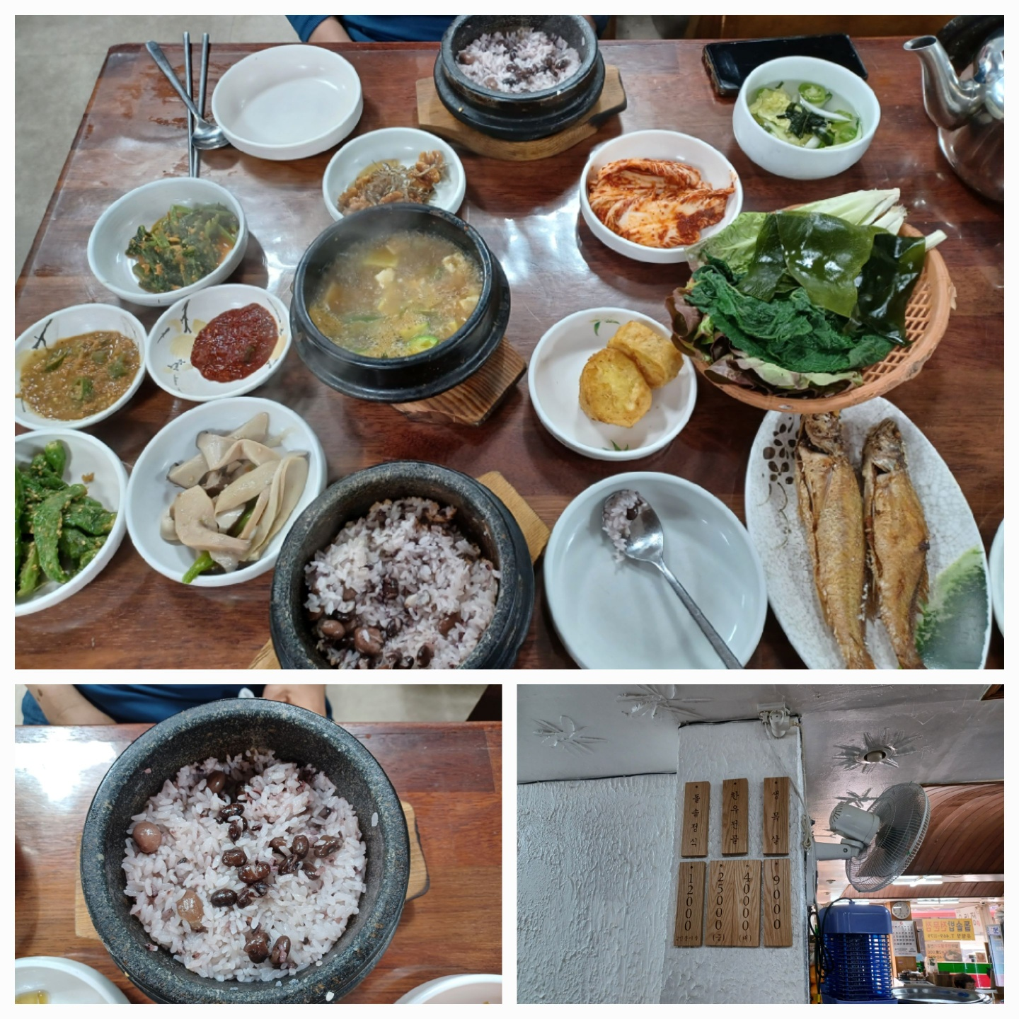 따뜻한 돌솔밥이 기름지고 맛나서 밥만으로도 배는 물론 마음의 허기도 채워질 듯합니다. 집밥 같은 반찬들이 모두 손이 갈 정도로 소박하고 맛이 있습니다.