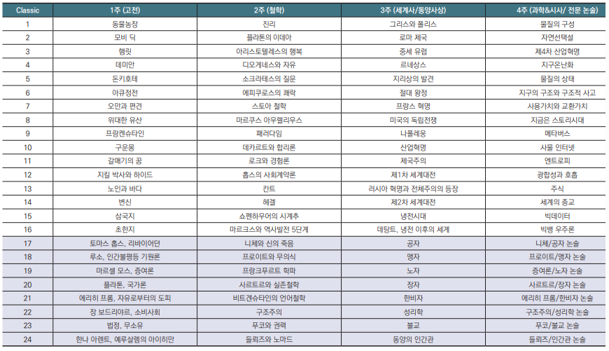 글답의 상위과정 '논술 클래식'에서 다루는 교재들은 압권입니다. 인문학 고전들의 향연입니다. 그 고전들을 스터디를 통해 코치님들과 함께 공부해 나가고 있습니다. 인문학을 사랑하는 코치님들이 현재는 각자의 업으로 바쁘지만 틈을 내어 함께 공부해 가면서 자신들의 글쓰기는 물론 자녀들과 학생들의 글쓰기과정을 익혀나가고 있습니다.