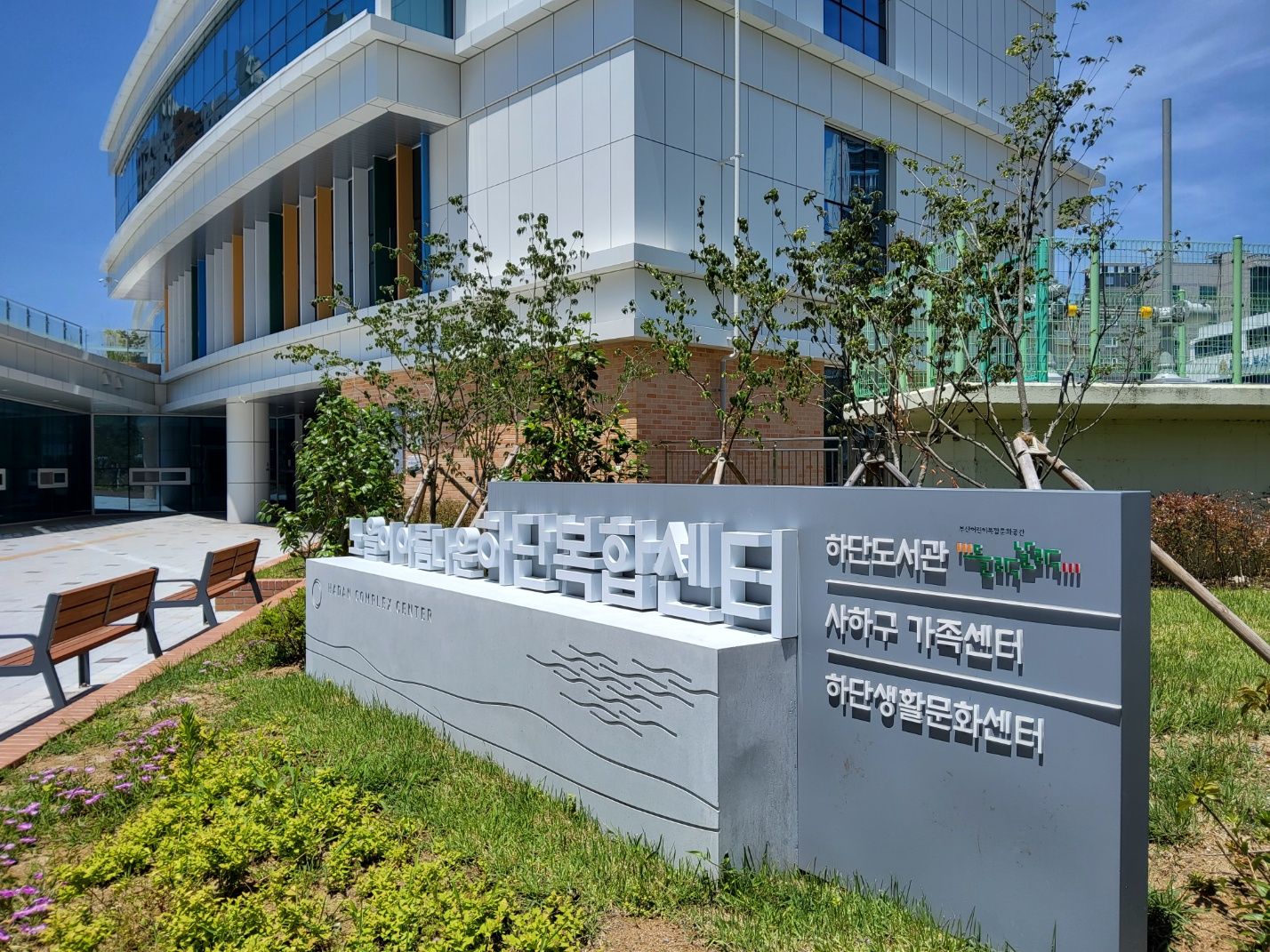 노을이 아름다운 하단 복합센터가 드디어 7월 2일 개관했어요. 도서관과 사하구 가족센터, 하단 생활문화센터 등이 함께 있는 복합센터입니다.