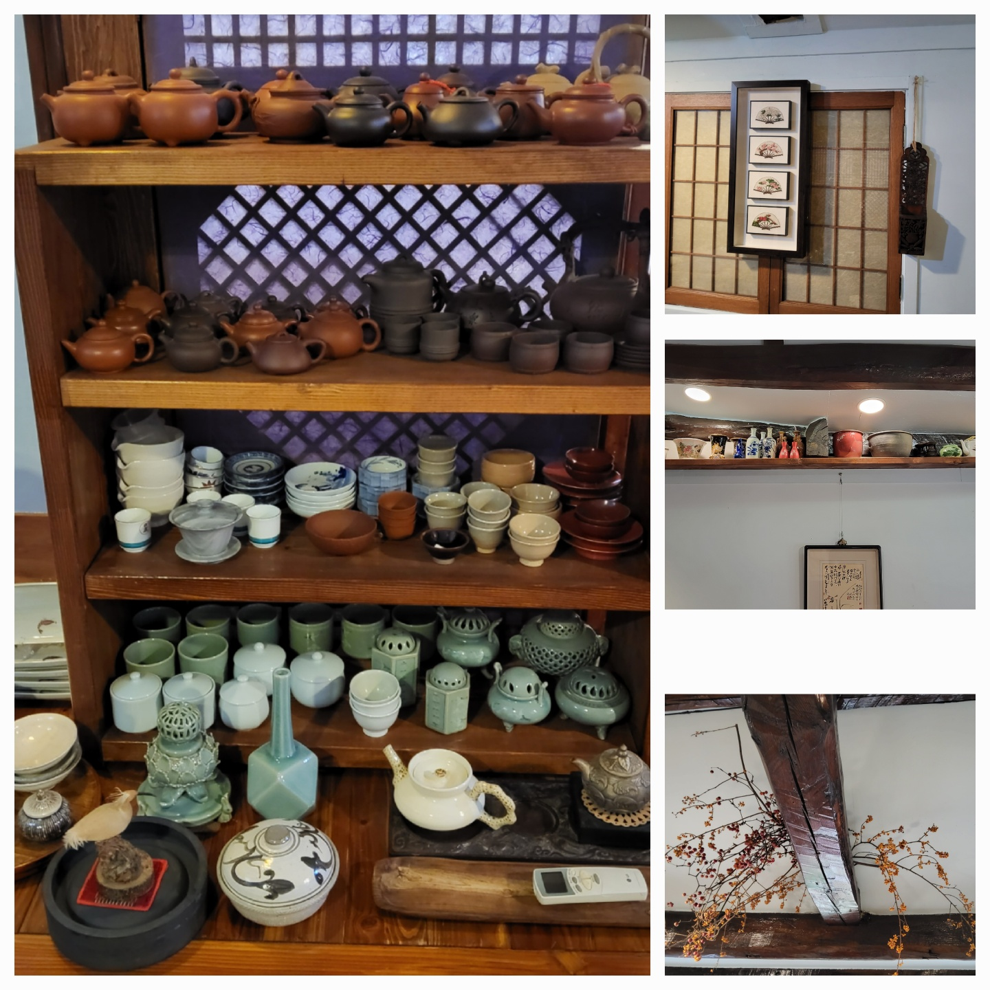 몇 분의 손님들이 식사를 하고 있었고, 우리는 안 쪽 별실로 안내되었습니다. 이 공간은 예약하면 스터디 등 소모임 행사를 위해 대여를 해주는 공간이라고 합니다. 6명 정도가 여유 있게 앉을 수 있는 방이었습니다. 주인장은 말차와 보이차를 직접 준비해서 우리에게 설명과 함께 맛을 보여 주었습니다. 차 맛이 깊고 그윽했습니다.