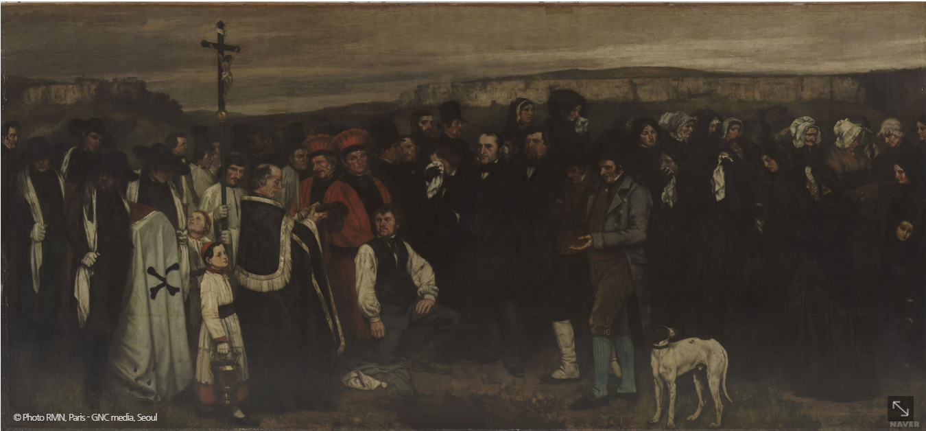 1789년 프랑스혁명이 후 19세기까지 왕조사회를 벗어나 시민사회로 진입하며 왕정과 공화정의 주도권 싸움이 계속되었던 시기입니다. 시민이 권력을 주도하는 시민사회로 향하는 민주주의 시대가 열릴 가능성이 있었기에 쿠르베의 사실주의 화풍이 생겨날 수 있었던 것입니다.