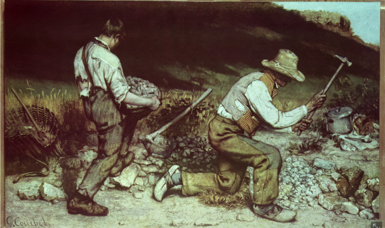 왕의 착취가 자본가의 착취로 변하는 것을 목격한 쿠르베는 현실을 있는 그대로 표현하려는 사조로 그림을 표현했지만, 부르주아들을 견제하고 사회주의 혁명 사상을 퍼트리는 작품으로 낙인찍힙니다.