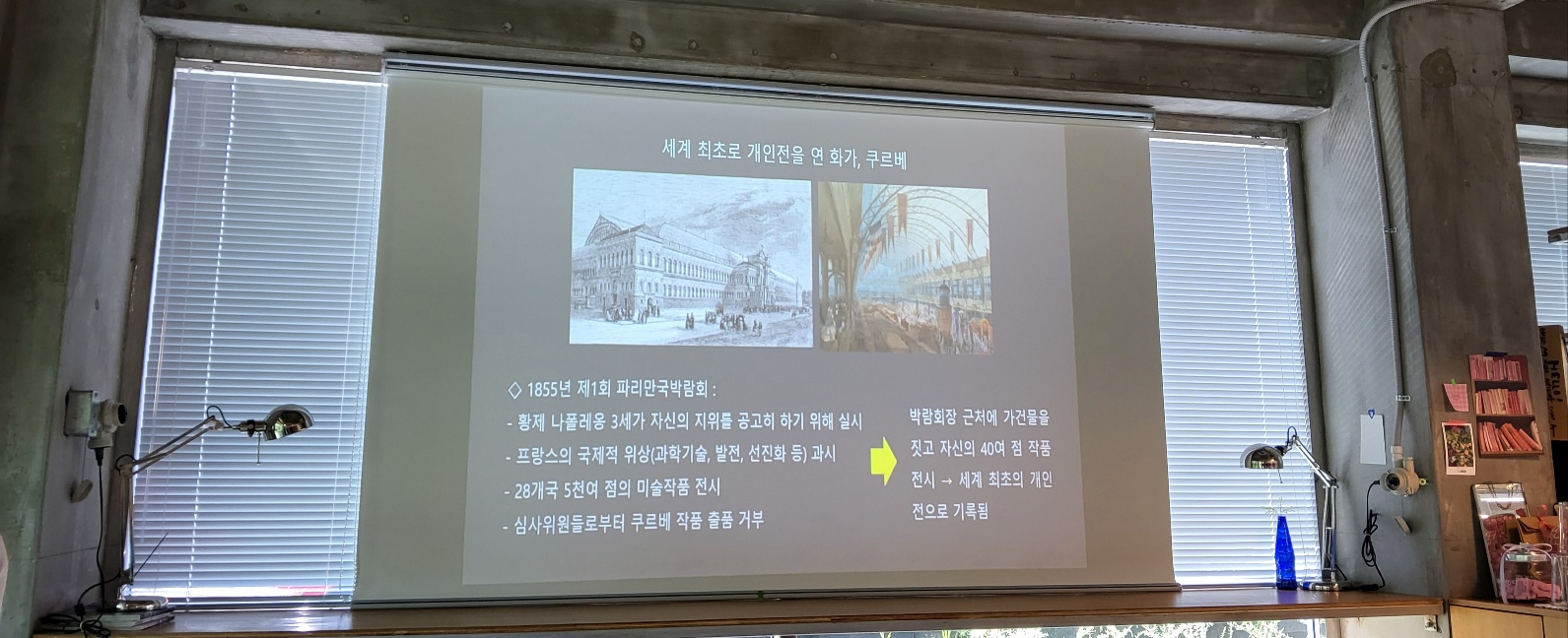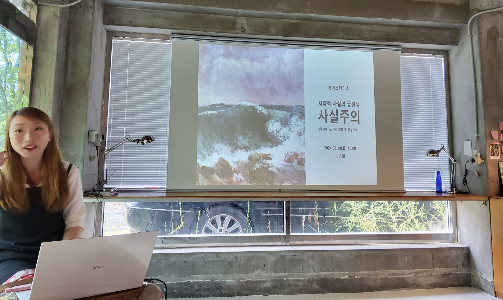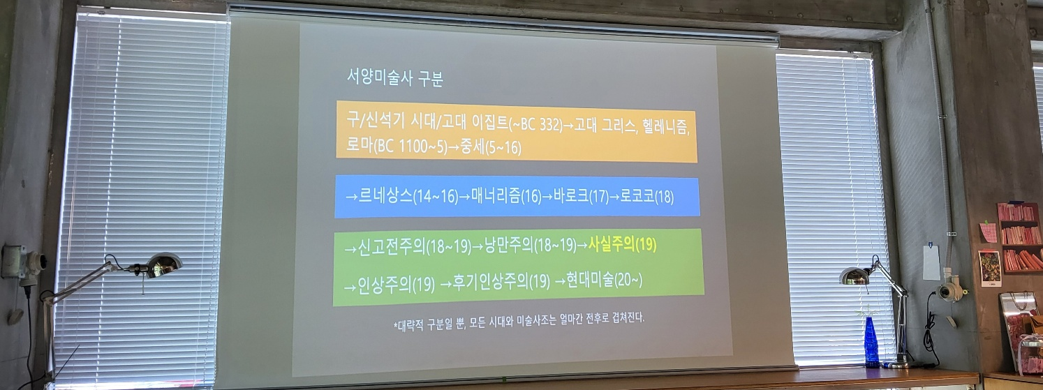 친구네 동네에 'Book and Space (북엔 스페이스)' 북카페에서 <새롭게 읽는 서양미술사>의 저자 박송화 선생님의 특강이 열린다고 해서 얼른 신청을 했습니다. 미술사를 시대별로 화가의 작품을 통해 설명을 해주는 강의입니다. 이 번 강의는 (8월 10 토요일) 사실주의에 대한 것이었어요.